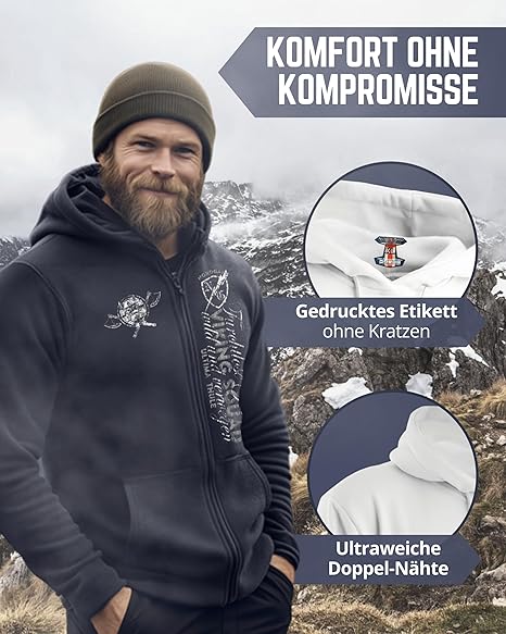 • BEQUEMER TRAGEKOMFORT - Mit eingedrucktem Carelabel, konturgeschnittenem Ärmelpatch & sorgfältiger Verarbeitung sorgt der Hoodie für ein optimales Tragegefühl ohne Kratzen & Zwicken.