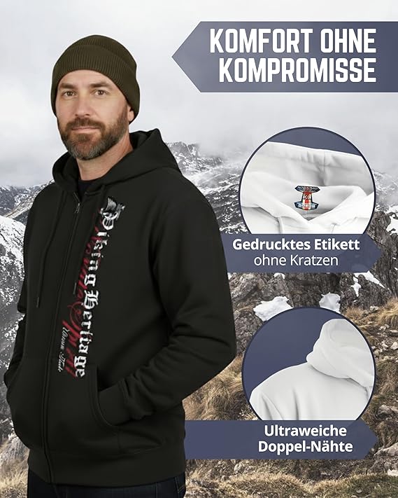 ✔ Nordische Inspiration: Ausdrucksstarkes Design mit einem Hauch von rauer Atmosphäre und Stärke – typisch für Nordgard. ✔ Bequemer Schnitt: Sportlich‑moderner Schnitt für optimalen Komfort im Alltag. ✔ Praktische Kapuze: Schützt bei Wind und Wetter und rundet das Streetwear‑Outfit ab. ✔ Vielseitig kombinierbar: Passt perfekt zu Jeans, Jogginghosen oder Layered Looks für jede Saison. ✔ Robuste Verarbeitung: Hochwertige Materialien und langlebiger Druck für viele Einsätze.