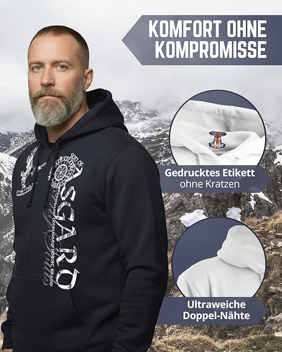 Zeige deinen nordischen Geist mit dem Nordgard Hoodie Vintersgard – ein Statement-Piece für Wikinger- und Streetwear-Liebhaber, das robusten Komfort, zeitlosen Stil und nordische Authentizität vereint. Trage ihn im Alltag, auf dem Festival oder beim Treffen mit Freunden – dich begleitet ein Hoodie mit Charakter.